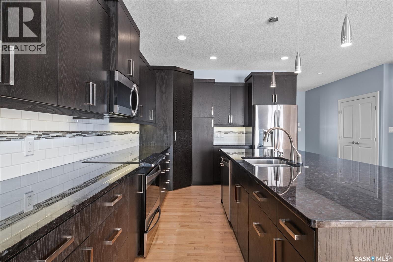 Premium waterfront condo in the prestigious Lake Villas gated community in Prince Albert. Situated in close proximity to the hospital, Alfred Jenkins Field House and the Rotary Trail. This semi-detached bungalow provides 1639 square feet on the main floor plus a fully finished walkout basement. The open concept main floor features a living room, dining area, spacious kitchen, primary bedroom with 4-piece ensuite and walk-in closet, additional bedroom, ½ bathroom and convenient main floor laundry. The lower level offers a family room, 2 bedrooms, bathroom, storage room and utility room. Direct access to the insulated 22’ x 24’ garage. Numerous extras include central air conditioning, gas fireplace, gas BBQ hookup, central vac, garburator and water softener. Don’t miss out on this opportunity to enjoy all the amenities of a home while embracing the carefree lifestyle of condo living! (id:4069)